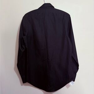 This Calvin Klein dress shirt features a sleek black design, perfect for formal occasions. Crafted from high-quality materials, it offers a polished and professional look. The classic collar and long sleeves add to its timeless appeal.