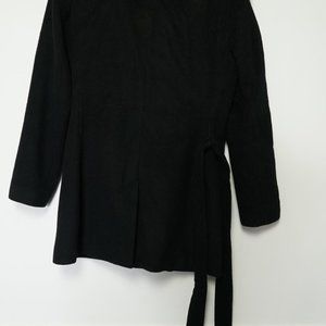 Black trench with buttons and tie. One tie keeper is missing at the back and will need a small repair. Warm and cozy.