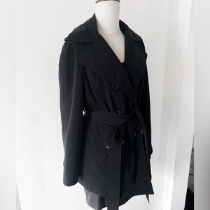 Calvin Klein Black Trench Coat with Sash – Size Small