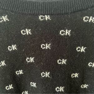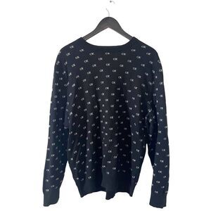 Calvin Klein Black Wool Blend CK Logo Pattern Crewneck Pullover Sweater