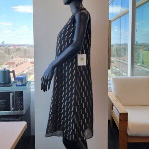 Enjoy this sophisticated, lightweight but lined, black and gold dress!