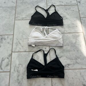 Sleek Calvin Klein bralettes in classic black and white. Comfortable and stylish for everyday wear.