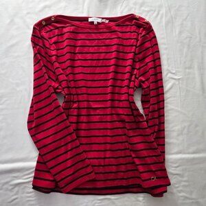 Calvin Klein Breton Stripe Boat Neck Top Gold Button XL