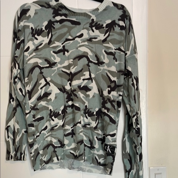 Stylish Calvin Klein sweater with a camouflage pattern. Perfect for casual wear.it is a thin sweatshirt material