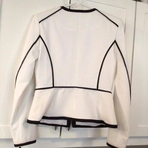 White with black contrast piping and zipper front