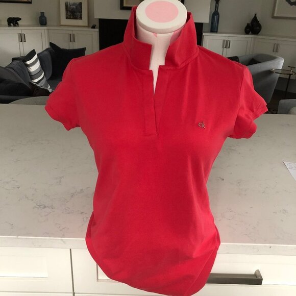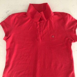 Calvin Klein Casual Cap Sleeve V Neck Cotton w Spandex Polo Shirt Coral Sz M