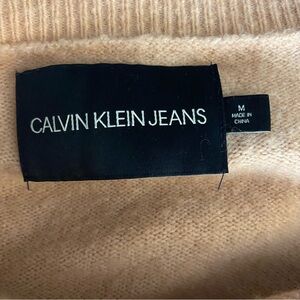 Calvin Klein Chevron Varsity Stripe V Neck Pink Sweater Size M Relaxed Fit