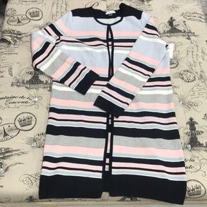 This long colorblock cardigan is a great finishing touch for the office outfit, but works just as well lounging at home.