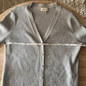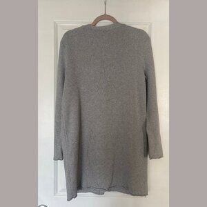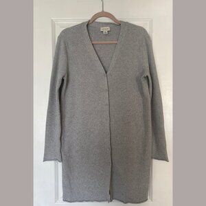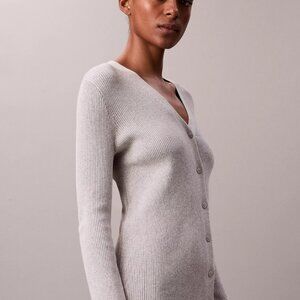 A figure-hugging duster cardigan defined with a fine ribbed knit. Made from 100% cotton for a soft hand. Styled with long sleeves and a low V-neckline.