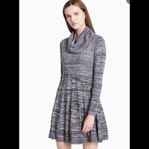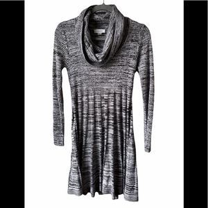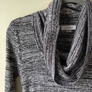 Calvin Klein Cowl Neck Marled Knit Sweater Dress Size Small Gray Black White