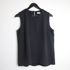 Calvin Klein Crew-Neck Twill Tank Top Blouse Sleeveless Black Size Medium