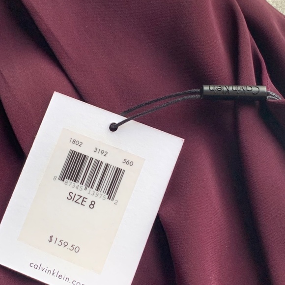 Brand new dress by Calvin Klein. Short coattail style dress, never worn- new with tags. Women’s size 8, deep purple colour