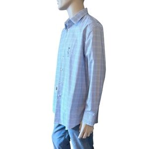 Features: Long sleeve, button cuff, wrinkle free, cotton blend, regular fit, full button front with formal placard, slight stretch to fabric