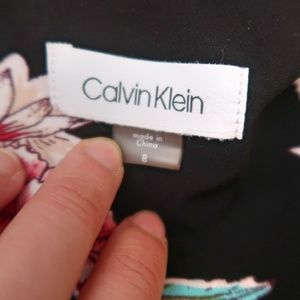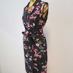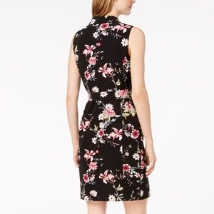 Calvin Klein Dress Wrap Style Collar Floral Black