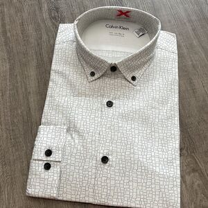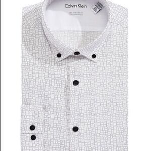 Calvin Klein Extreme Slim Fit Printed Dress Shirt-WHITE/BLACK-15.5-34/35