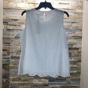 This summer-ready tank features a scallop hem and eyelet construction.