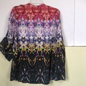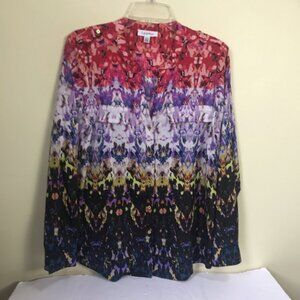 Calvin Klein Floral Oversized Boho Shirt Blouse Button RollTab Long Sleeve Top M