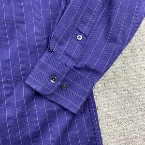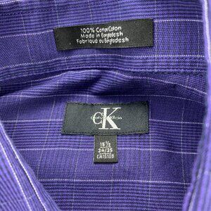 Calvin Klein Formal Shirt Men 15.5 34/35 Purple Checkered Button Up Long Sleeve