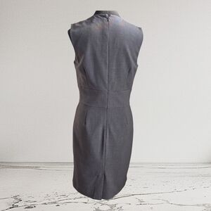 This Calvin Klein dress is a stunning sleeveless sheath in a sophisticated gray hue, perfect for cocktail events. The crew neck and tailored fit offer a modern silhouette, while the midi length adds a touch of elegance. Length 38" Bust 32" Waist 28"