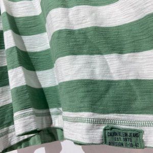 Calvin Klein Green and White Striped Polo Shirt LIKE NEW