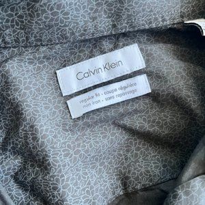 Calvin Klein Grey Pattern Button-Down "Regular Fit Non-Iron" Cotton Dress Shirt. In excellent condition with no visible flaws or defects (tears, stains, damage, pilling). Great for work or casual wear. Great closet staple & perfect for all seasons!