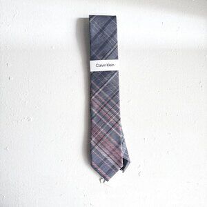 Calvin Klein Grey Pink Plaid Skinny Tie.