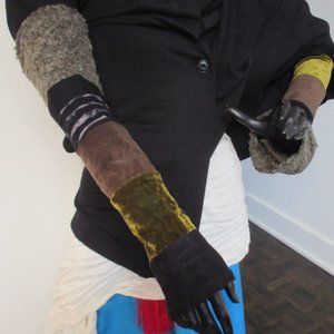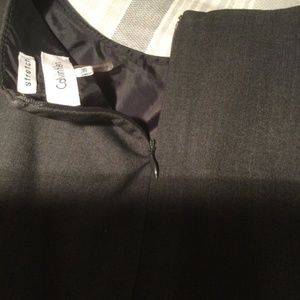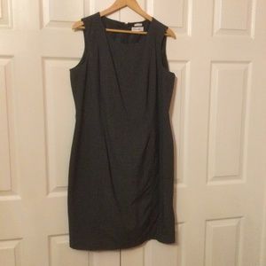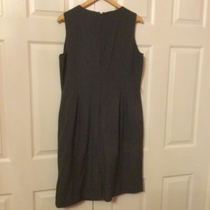 Elegant dress to wear alone or under a jacket. Has spandex. Forgiving and highly comfortable. Well made, not showing wear. Loop to hold belt, if desired. No belt included.
