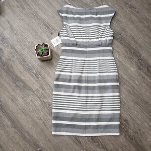 Gray & White stripped career sheath dress