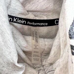 Calvin Klein gray turtleneck sweatshirt in a soft cotton blend. Medium-weight, long sleeves, and collarless pullover style—perfect for layering in cooler seasons. Stylish, comfy, and machine washable.