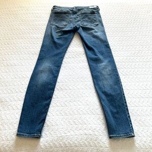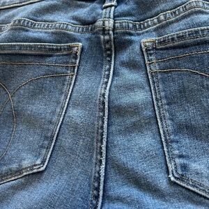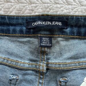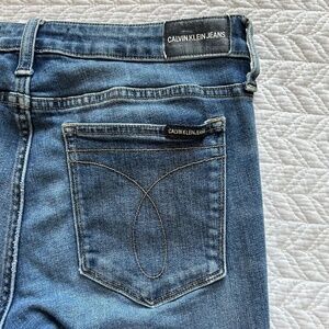 Calvin Klein 001 Super Skinny Jeans in a med Blue wash, with intentional fading at all the right places! Whiskering at back seam.Soft and stretchy denim of 97%Cotton 3%Elastane. Size 6 Approx flat measurements: Waist14” Hip17.25” Leg Opening 4.5” Rise9”. The size tag says it’s a 32” Length , but please note my measurements suggest a 30/31” Inseam. A small stretch mark on right front. In excellent condition 🤩