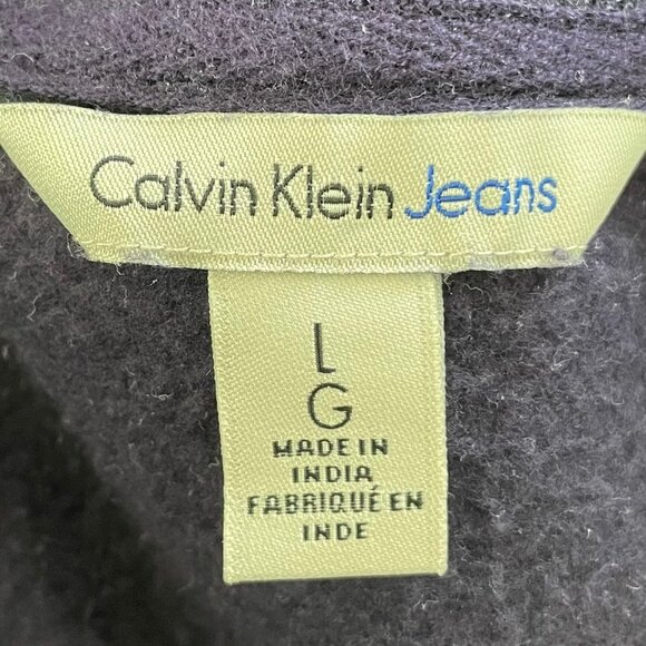 Calvin Klein Jeans 1/4 Zip Hi Collar Sweatshirt Top Navy w Blue Wht Logo Sz L