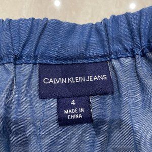 Calvin Klein Jeans Girl White Blue Chambray Off Shoulder Dress Size 4