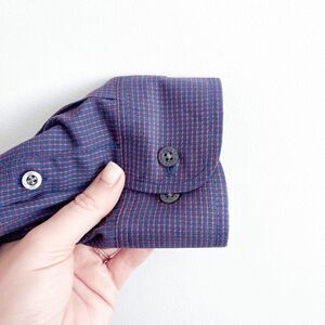 Calvin Klein Jeans Men's Career Shirt Button Down Long Sleeve Micro Dot Blue Red L