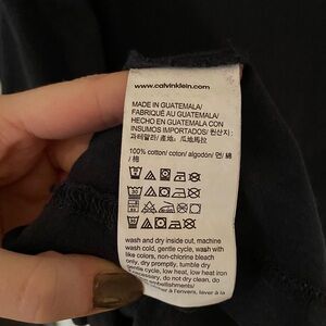 Calvin Klein jeans navy T-shirt featuring a large ‘ck’ in red lettering as well as Calvin Klein Jeans in white lettering.
