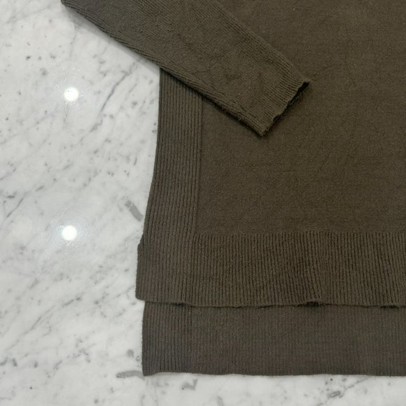 Turtle has slits on the side and the front panel is a bit longer than the rear panel of the turtleneck.