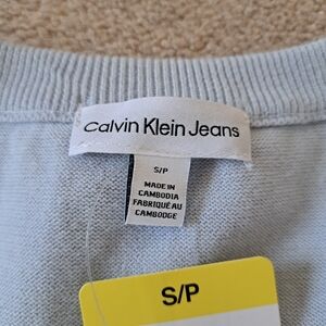 Calvin Klein Jeans V-Neck Sweater Women's Small Pale Blue Cotton Knit Top