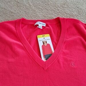 Calvin Klein Jeans V-Neck Sweater Women's Small Pink Cotton Knit Top NWT