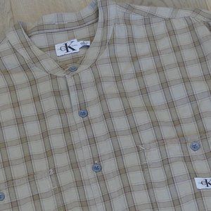 Calvin Klein Jeans Vintage Checkered Beige Large Button Down Shirt