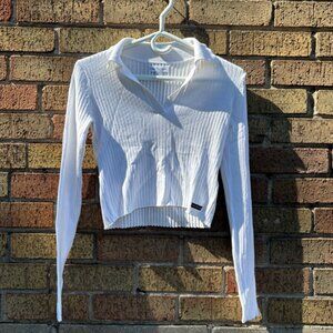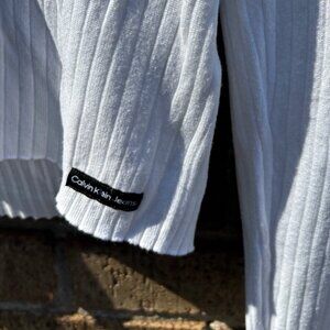 Calvin Klein Jeans White Ribbed Knit Collared Top (Size XS)