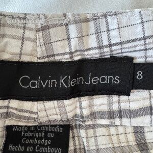 Calvin Klein Jeans Women's Plaid Bermuda Shorts Lightweight Walking White/Gray 8