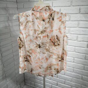 Calvin Klein Ladies Tie Neck Peach & Tan Sleeveless Blouse