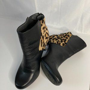 Calvin Klein Leopard Print Ankle Boots Size 8 1/2 Black Leather Boot