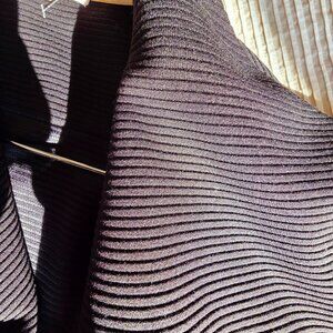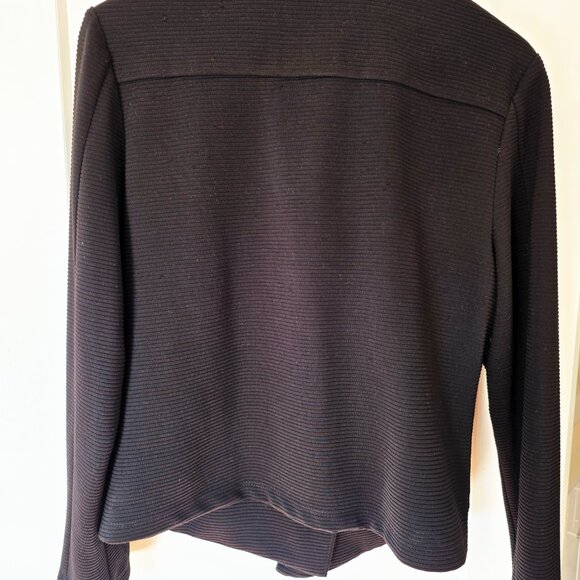 Style: this open front, light-weight jacket is perfect for the fall, spring, and even cooler summer evenings. The ribbed motif fabric, gold zipper-detail pockets on the front, and lapels that drape a few different ways create a chique-casual look that can be dressed up or down over any pants, skirt, or dress. Sized somewhat generously to allow the lapels to flap naturally for an easygoing, flattering appeal.