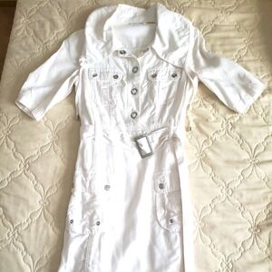 Calvin Klein white linen dress EUC worn once side zip lots of pockets, belted perfect for spring summer