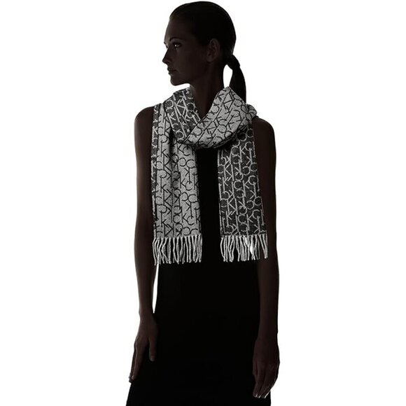 Calvin Klein Logo Knit Monogram Scarf with Tassels
