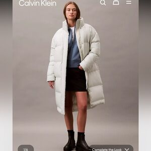A protective essential against cold temperatures, this puffer coat has a down fill for extra warm layering. Made with a mock neck with an interior knit bomber collar. Designed with a front zip closure and slip pockets at the sides.