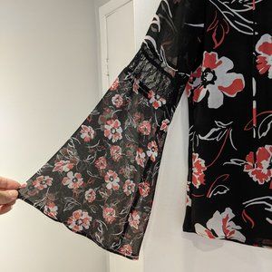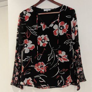 Calvin Klein Long Sleeve Floral Bell Sleeves Blouse Size XS