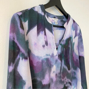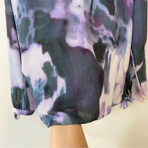 Calvin Klein flowy high-low blouse in abstract purple and black watercolor tie dye looking wash