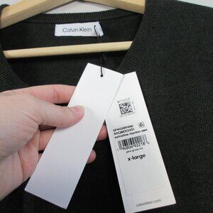 Calvin Klein Men Extra Fine Merino Wool Blend Sweater XL Green Casual Luxury 338