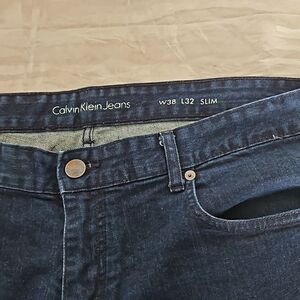 Calvin Klein Men Slim Fit Jeans 38×32 Dark Blue Washed
